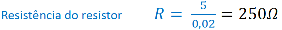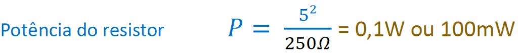 Se você observar essa tabela perceberá que não temos resistores de 250Ω, somente temos a opção de 220Ω ou 270Ω neste caso você pode tomar a decisão de comprar o de 270Ω (opte sempre pelo de maior valor para mante a segurança do circuito) ou utilizar dois ligados em série um de 100Ω e outro de 150Ω que juntos se somam e formam 250Ω.